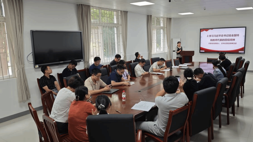 (通讯员:薛爱芳)9月18日下午,化学系第二教工党支部在化学楼A106会议室举行主题党日活动。学院党委书记涂俊才、支部全体党员及无机与分析化学教研室非党员教师代表参加活动,活动由党支部书记梁建功主持。宣传委员薛爱芳领学了习近平总书记给全国特岗教师代表的回信。她以“用知识点亮乡村未来”为主线,系统阐释了回信的背景、核心内容与精神实质,号召全体党员教师以特岗教师为榜样,把青春写在基层教育大地上,把论文写在祖国田野上。...
