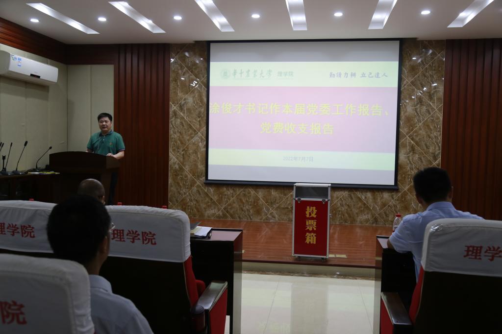 大会在庄严的国歌中拉开帷幕。学院党委书记涂俊才同志首先代表本届党委作工作报告和党费收支管理情况报告。他在报告中,总结回顾了学院上一届党委的主要工作、分析了学院事业发展面临的机遇与挑战,明确了学院党委未来五年的主要工作目标及具体工作举措。
