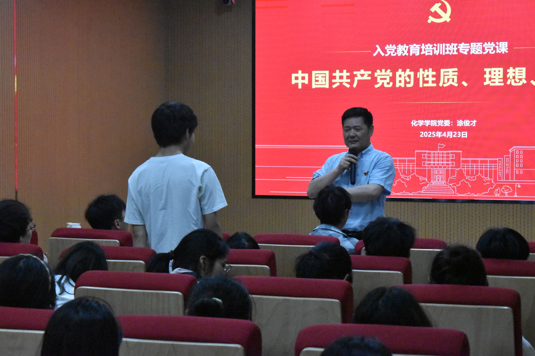 (通讯员:张金秋)4月23日晚,yl9193永利集团党委书记涂俊才在化学楼102报告厅为我院积极分子、发展对象、预备党员讲授了以“中国共产党的性质、理想、宗旨”为主题的入党教育培训班专题党课。