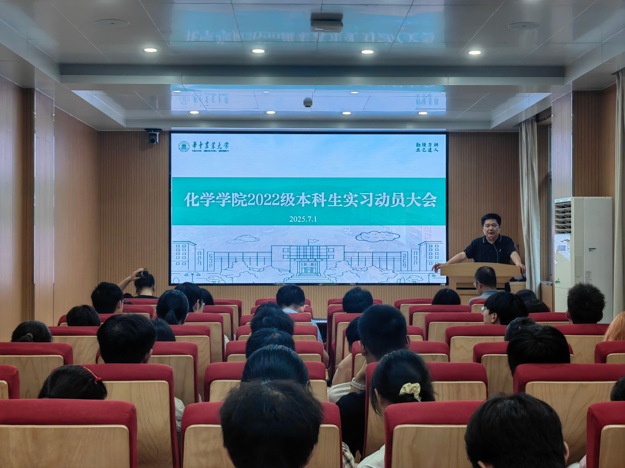 (通讯员:杨晨茹)7月1日下午,2025年应用化学专业毕业实习动员大会在化学楼A102召开。学院党委书记涂俊才、副院长曹敏惠、实习带队教师及2022级应化专业全体学生参加了动员会,会议由化学系主任梁建功主持。