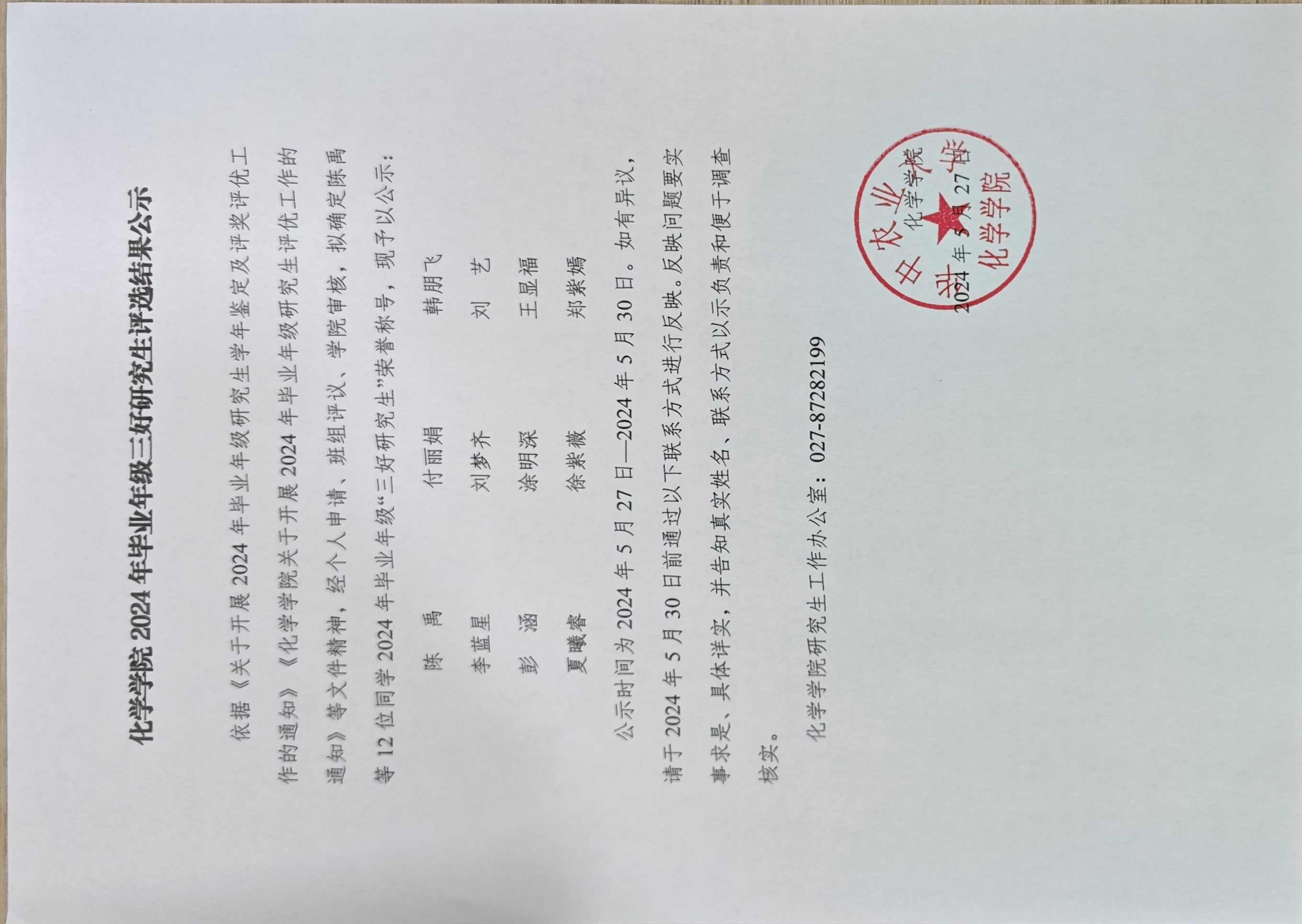 yl9193永利集团2024年毕业年级三好研究生评选结果公示