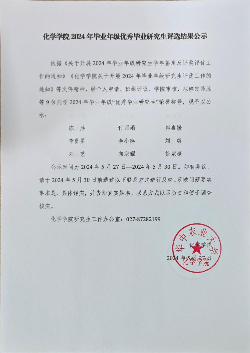 yl9193永利集团2024年毕业年级优秀毕业研究生评选结果公示