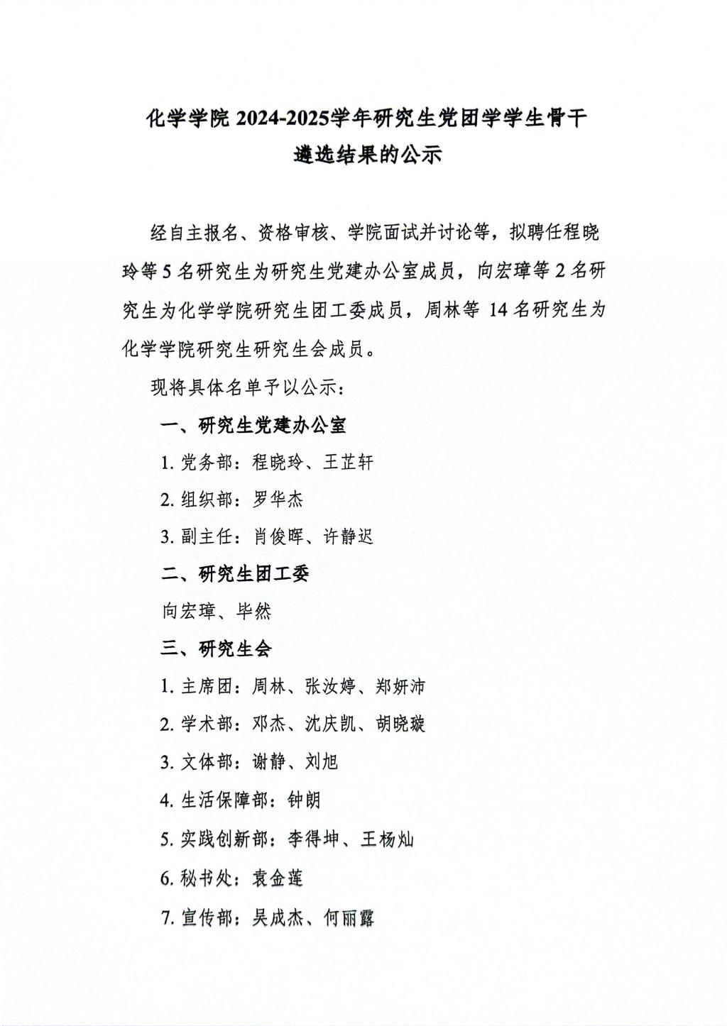 yl9193永利集团2024-2025学年研究生党团学学生骨干遴选结果的公示