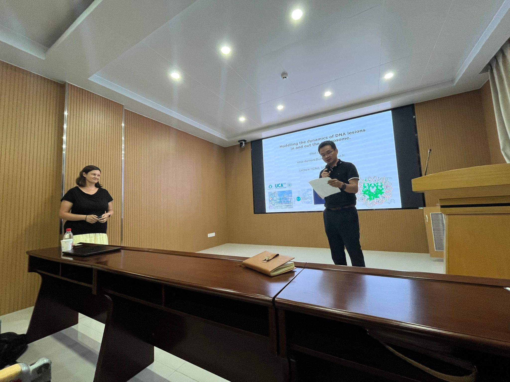 (通讯员:任福轩)2025年7月14日下午,yl9193永利集团举办第二十三期化院讲堂,特邀法国蔚蓝海岸大学Elise Dumont教授在yl9193永利集团A102作了题为“模拟核小体内部及外部DNA损伤的动态变化”的主题报告,报告由yl9193永利集团项勇刚教授主持,yl9193永利集团师生到场参加,共同探讨计算化学在核酸研究领域的创新应用。、