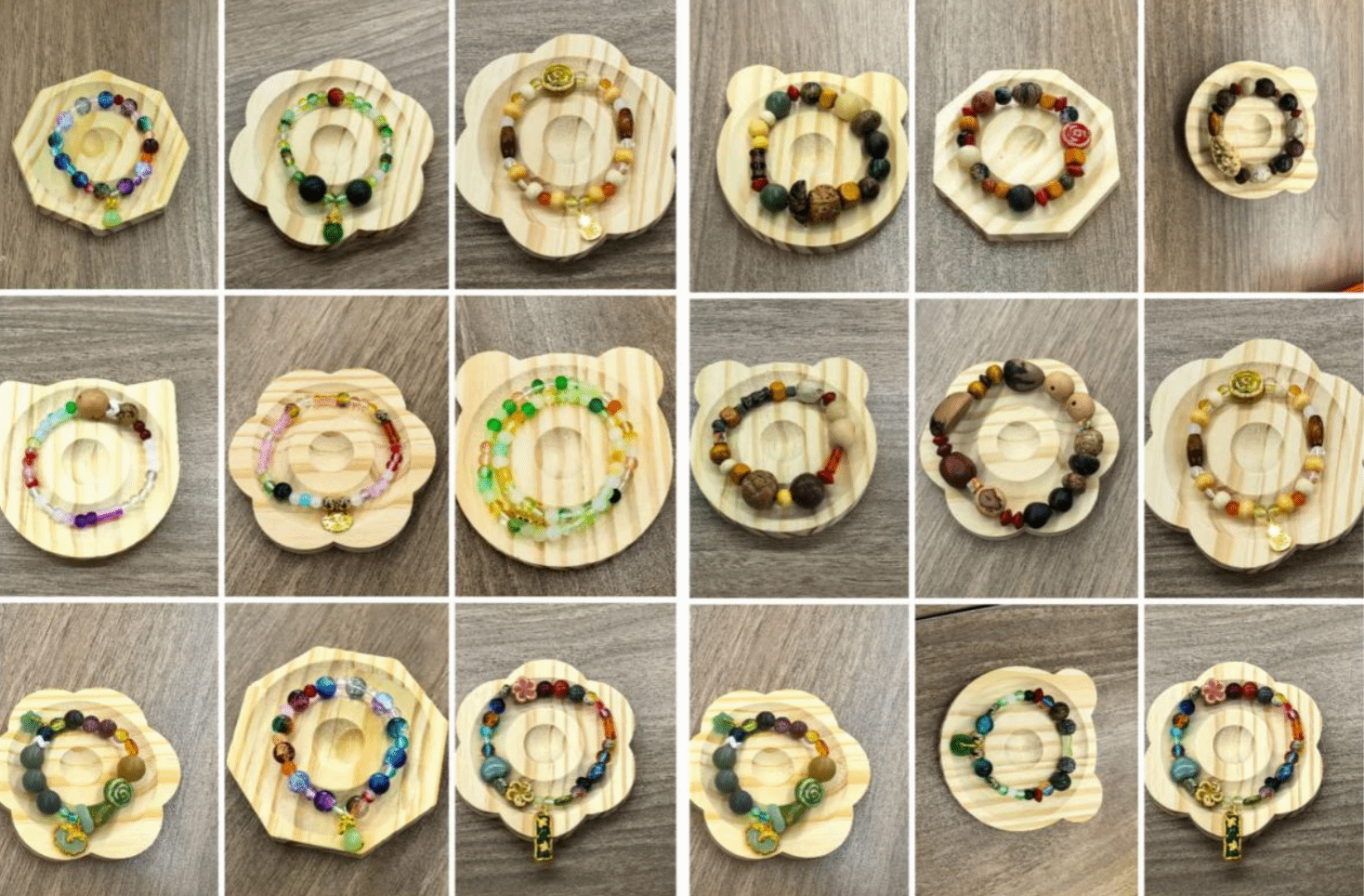 在学习观摩后,同学们领取了事先准备好的材料包,包括各类石珠和彩色丝线等。在团队成员的耐心指导下,大家开始专注创作,将民族文化元素巧妙融入设计之中。缤纷的珠串在指尖碰撞出灵感火花,一个个充满“民族风”特色的手作作品陆续呈现,活动现场宛如充满艺术气息的“手作小天地”。为丰富同学们的创作体验,活动还提供了多样化的饰品材料,鼓励大家设计独一无二的个性作品。