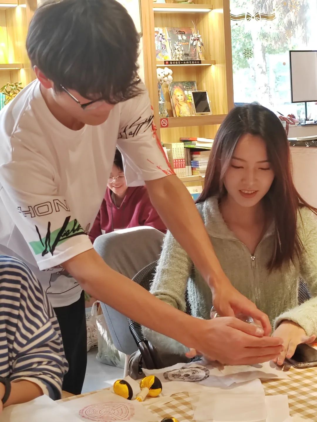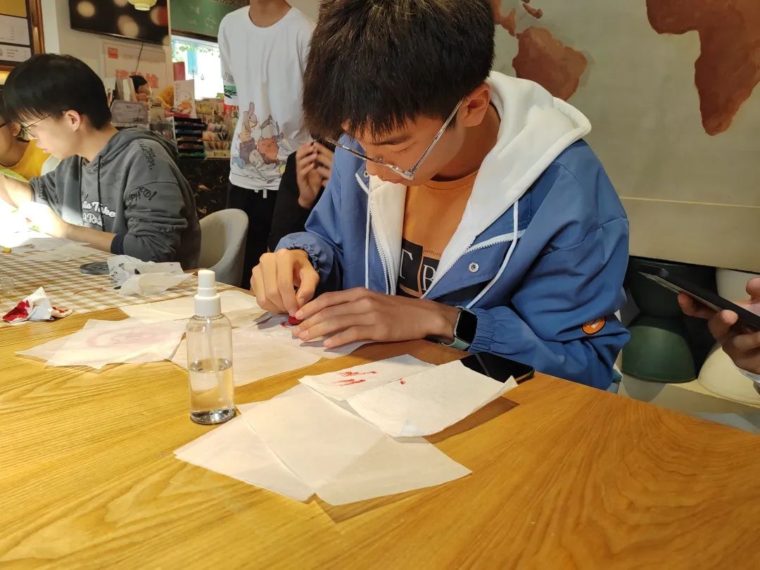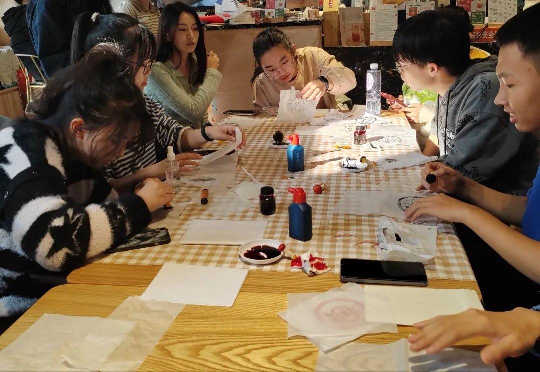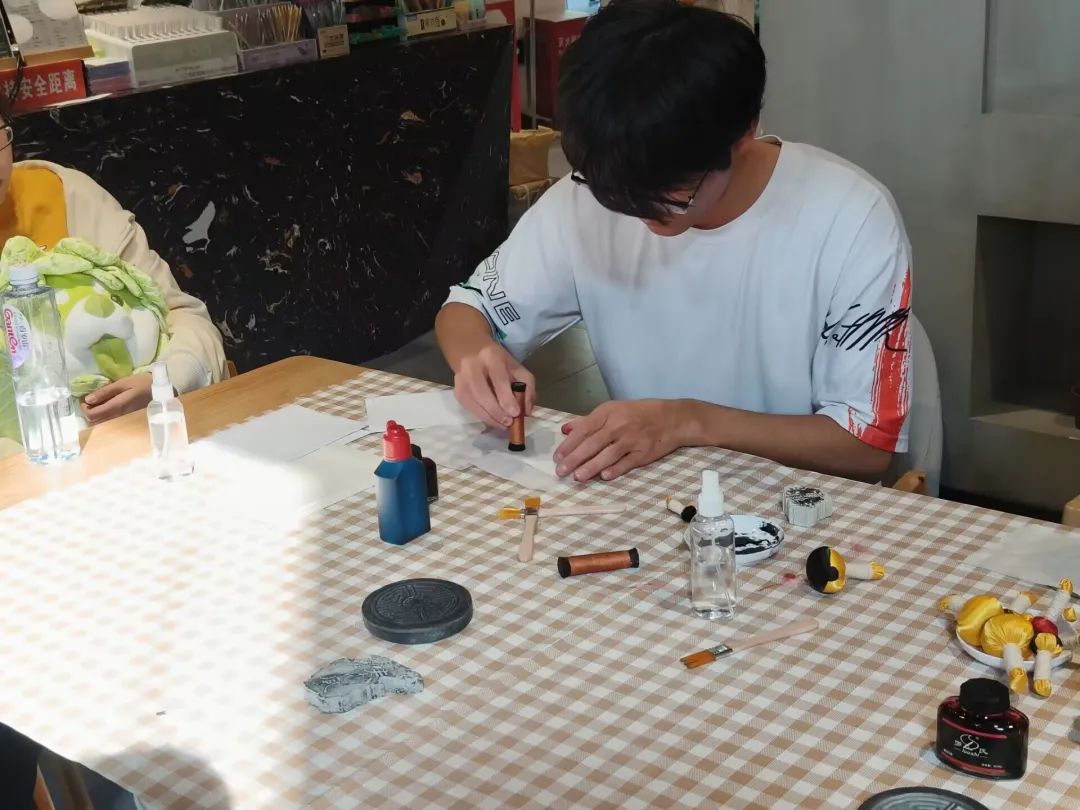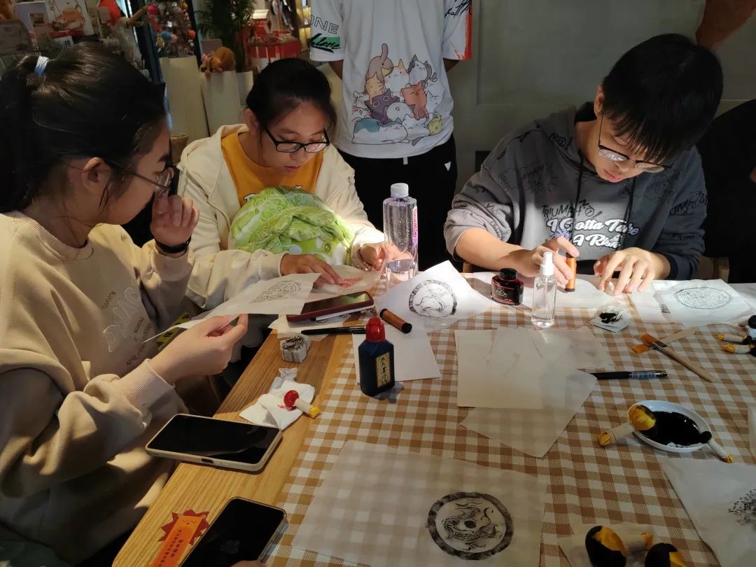 在制作过程中,大家互相分享自己的拓印成果,欢笑声不绝于耳。