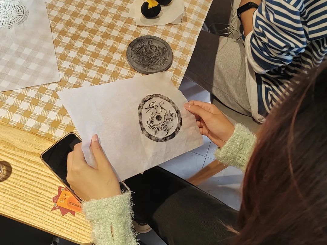 制作完一张拓片后,大家成就感满满,纷纷把作品带走留念。