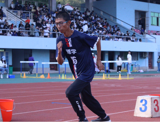 “体育竞技的最大乐趣,就在于在竞赛中认识自我、寻找自我、超越自我”,谈到这次800米的决赛,信息2203班董文博带着刚从田径比赛中带来的汗水微微喘息。相较于其他组的比赛,董文博在赛场上与另一名选手展开了激烈的拉锯赛。800米的长度,他自第二名被反超到第三名,又在调整状态后冲刺超过前一名竞赛选手,继而又被超越,在不到3分钟的时间内,这场相互追赶僵持不下的比赛来回反超次数高达5次。一次次的提速、一次次的超越,董文博在竞赛中不断刷新自己的速度,刷新自己对于比赛的认识。虽然最终仍是拿到第三名的成绩,他不觉遗憾,“用尽全力去奔跑,尽力达到自己的目标,不放弃每一次可以超越的机会,这才是我在这场比赛中最大的收获。”