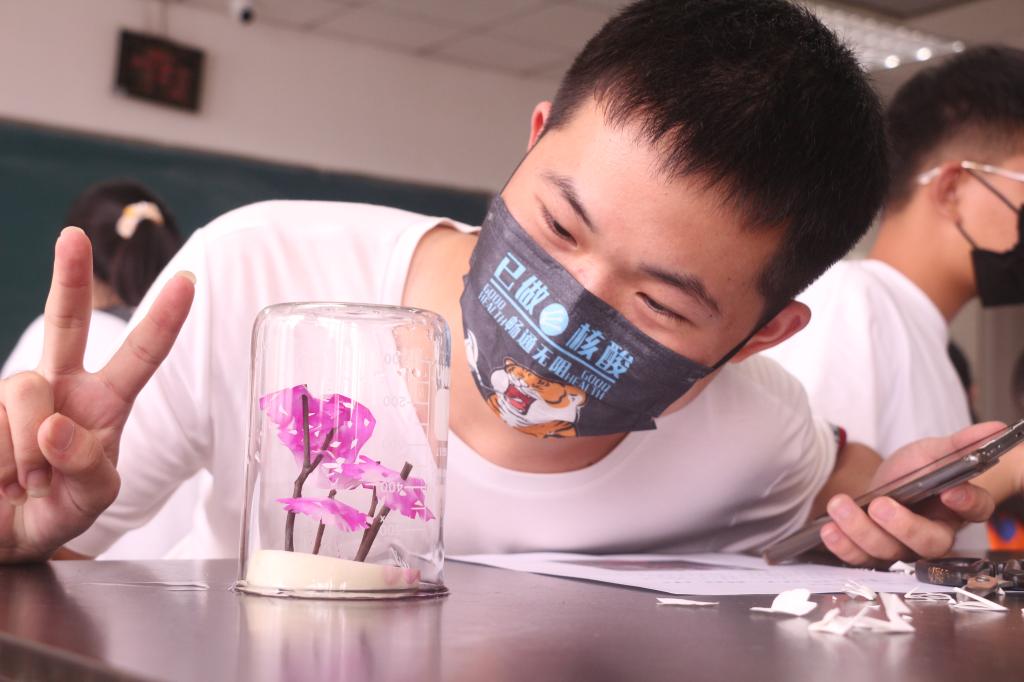 光电信息科学与工程专业本科新生余沁颐在参加完“铜纸银墨,篆笔狮山”学科文化体验活动兴奋地分享道,“利用化学反应来写字太有趣了,化学学科的神奇与书法艺术的美感充分融合,体验感非常棒!”
