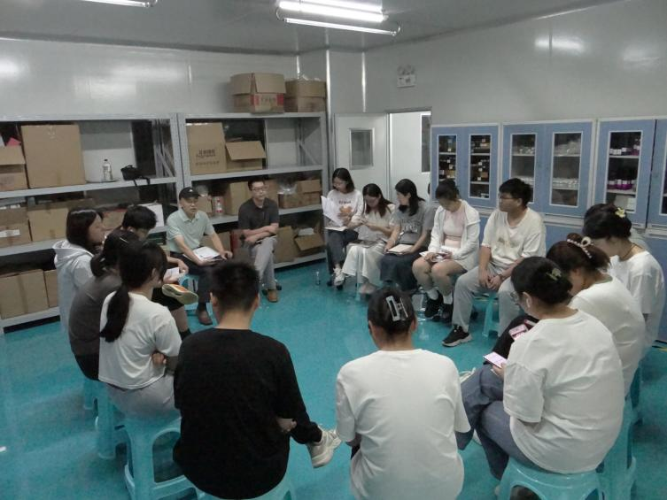 为了促进同学们互相学习、启发思维,胡先文、成万民老师组织全体同学开展了两次集中交流分享会。同学们畅所欲言,分享个人的心得收获。周易小组四位同学“实习中深入了解设备各部分的作用,团队通力合作安装、运行,发现问题及时交流讨论,解决出现的问题,这些经历和锻炼的对我们终生有益。”谭余婷认为“天然产物是大自然对人类的馈赠,农副产品的深度加工利用潜力巨大”。徐慧博体会到“对次品的标准的把握其实也需要丰富的经验,重复的工作中也可以有收获”。李诗思感叹“日常使用的护肤产品中的成分都是平时学到的物质,其化学性质如此有趣和有用”!朴松哲深深体会到“工作中需要坚持和适应,激发了对毕业后工作的热情,增强了信心,明确了目标”。