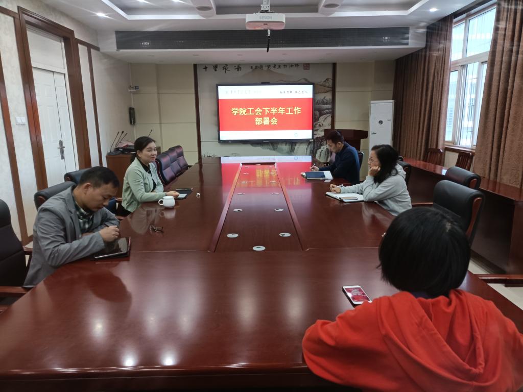 (通讯员:张涛)10月12日下午,学院在逸夫楼B212召开工会工作部署会,全体工会委员参加了会议,会议由学院工会主席曹敏惠主持。