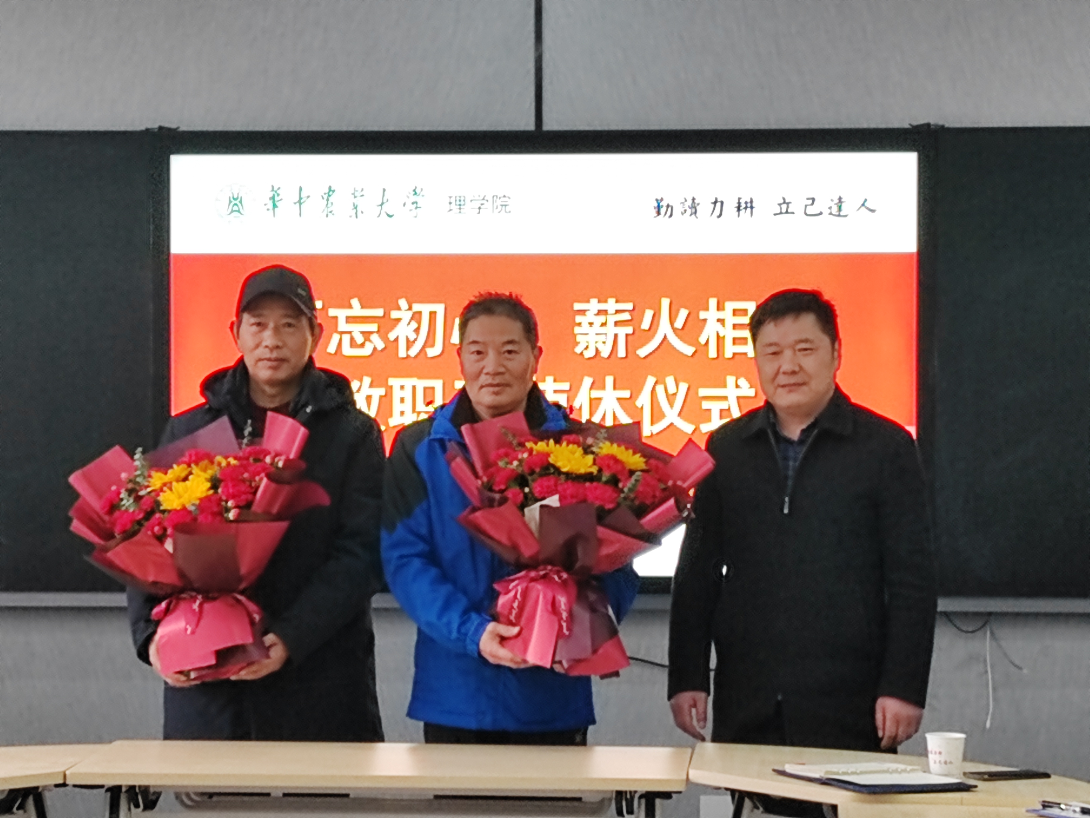 2月28日下午,理学院在逸夫楼B221会议室召开“不忘初心、薪火相传“教职工荣休仪式,荣休教师盛平安、钱辉跃,院党委书记涂俊才,副院长成协设,副院长沈婧芳、副院长曹菲菲和师生代表参加,会议由工会主席曹敏惠主持。