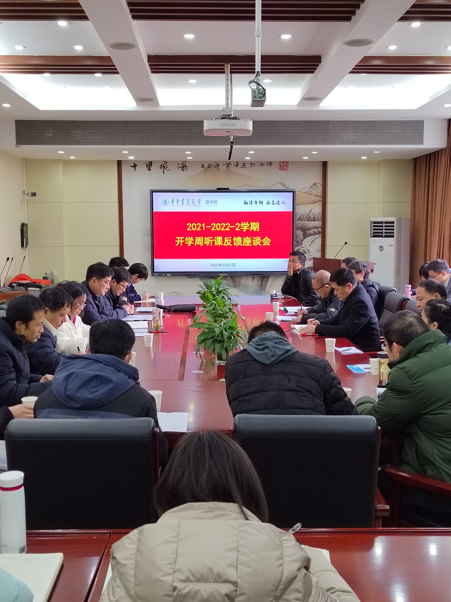(通讯员:张杰)2月21日上午,学院在逸夫楼B212会议室召开新学期开学第一课听课反馈座谈会。校党委常委、组织部部长、统战部部长李向东,学校职能部门相关老师、学院与系班子成员、理学院相关授课教师等参加会议,会议由理学院党委书记涂俊才主持。