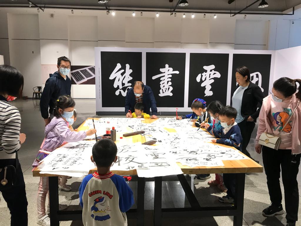 随后,大家来到艺术馆一同参观《三希堂法贴》,《三希堂法贴》全称《御刻三希堂石渠宝笈法帖》,为清代著名的汇刻丛帖之一,汇集的书法作品均为碑帖。因帖中收有被乾隆帝视为稀世墨宝的三件东晋书迹,即王羲之的《快雪时晴帖》、王献之的《中秋帖》和王珣的《伯远帖》,而当时这三件稀世珍宝珍藏于故宫养心殿“三希堂”,故取名《御刻三希堂石渠宝笈法帖》,通称《三希堂法帖》。大家或驻足参观,或讨论交流,同时,还可以与孩子一起挥毫泼墨,亲身体验书法的博大精深。数学系丁鹿伟老师说到,可以带着孩子近距离欣赏到如此珍贵的名家作品,感受先贤们字里行间的顿挫婉转与俊逸洒脱,真是让我们赏心悦目,身心通达。