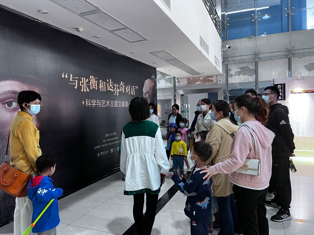 “与张衡和达芬奇对话”科学与艺术主题文献展用原著展示、文献复制、空间设计等方式,以图书、文献摘录、模型实物、艺术装置等媒介为大家提供沉浸式阅读和体验。志愿者讲解员为我们详细讲述了达芬奇和张衡的人物生平,达芬奇的经典艺术作品和手稿,张衡的“浑天仪”“地动仪”“指南车”“计里鼓车”“日晷”等发明创造,让大家充分感受到了张衡和达芬奇两位巨匠的智慧和创造。