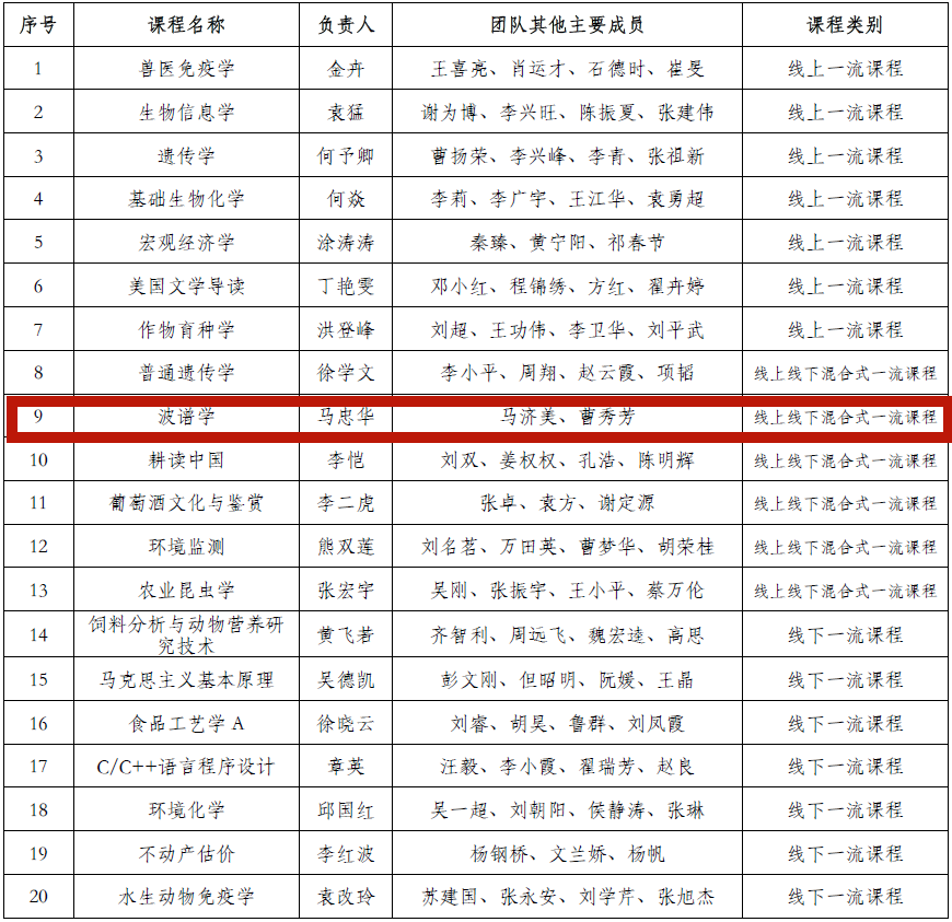 其中,我院马忠华老师主持的《波谱学》获批为2022年度省级一流本科课程。