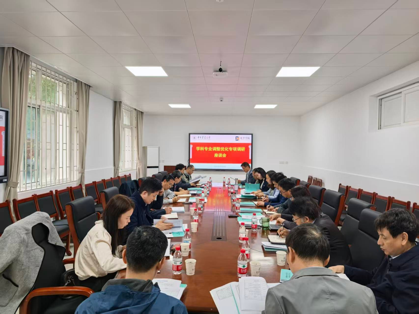 (通讯员:廖英飞)10月16日,学校来院专题调研学科专业调整优化专项工作,学校发展规划部部长程华东、本科生院招生就业处处长杨道兵、研究生院学位与质量管理处处长马华力、人力资源部副部长赵希庆、发展规划部副部长刘辉、生命科学交叉学院党总支副书记陈柳、学院领导班子、系主任、骨干教师等参加座谈会。