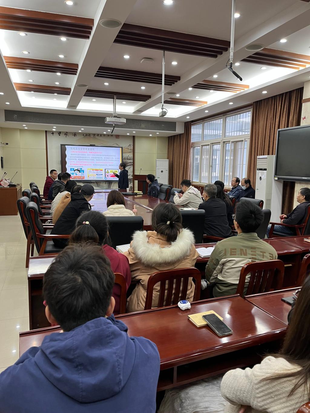为增强师生实验室安全责任的意识,有效的提高安全防护和应急处理能力, 11月18日上午学院在逸夫楼B212会议室组织实验室安全培训,邀请建安部危化品管理督导员马敬中老师,作“实验室危化品及废弃物安全储存与科学管理”报告。学院全体专业技术人员、科研实验室负责人、科研实验室安全员共计50余人参加会议。会议由成协设副院长主持。