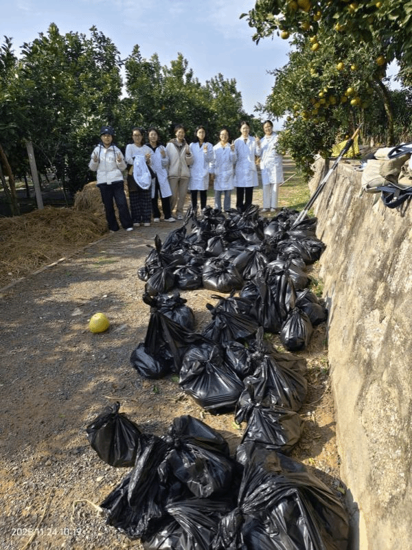 在刘永红老师和段丽君老师的共同组织与带领下,同学们以饱满的热情投入到柑橘果实样品采摘实践中。大家分工协作,严格按照操作规程,认真进行果实的筛选、采集、分类和包装。尽管汗水浸湿了衣衫,但面对挂满枝头的累累硕果和亲手完成的劳动成果,每位同学的脸上都洋溢着喜悦与自豪。在大家的共同努力下,最终保质保量地完成了既定的实验样品采摘任务。