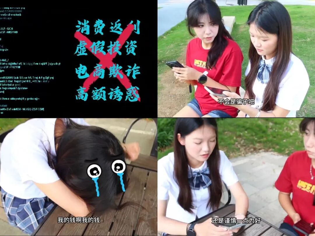 其中,我院创作的《消费返利陷阱:江江的“薅羊毛”噩梦》堪称“防非科普范本”。作品以大学生“江江”被“高额消费返利”诱惑陷入骗局的剧情为主线,通过生活化的场景、接地气的对话,拆解非法集资“画大饼”“高回报”的常见套路,让观众在沉浸式观看中快速掌握识别技巧。该作品不仅构思新颖、剧情紧凑,更因贴近校园生活,引发广泛共鸣。