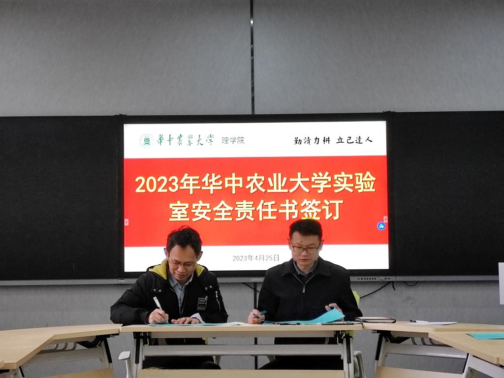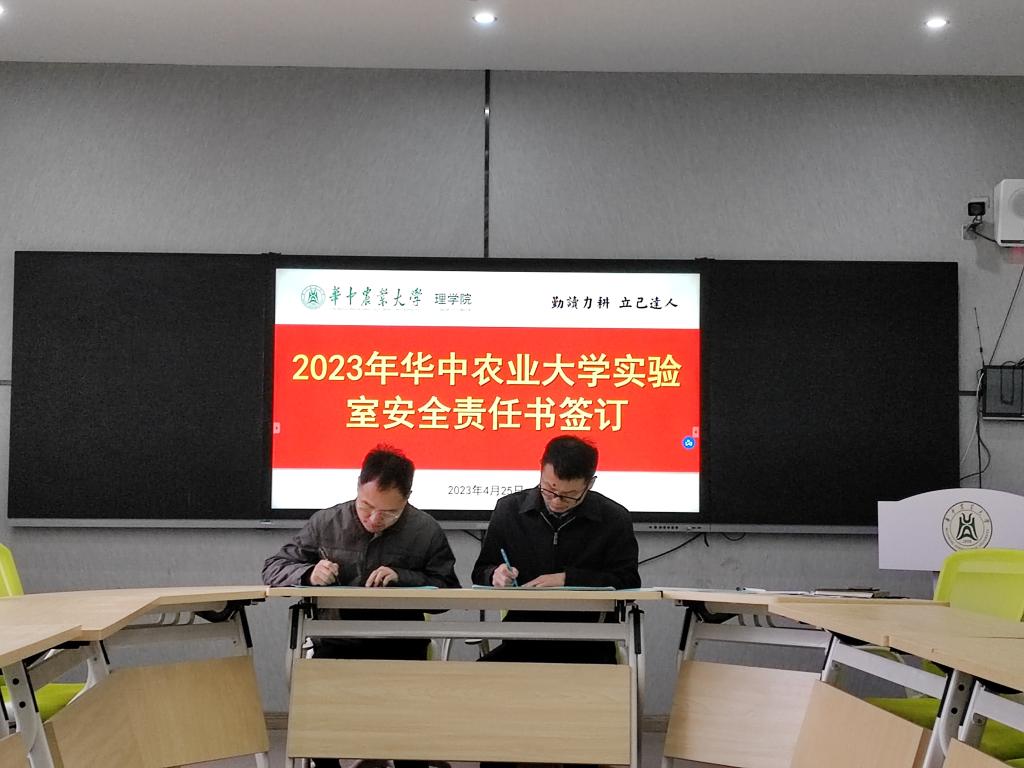 (通讯员:张涛)根据教育部高等学校实验室安全检查的要求,为更好的全面落实实验室安全二级、三级管理责任制度,加强理学院实验室安全管理,我院于2023年4月25日上午在逸夫楼B221教学创新中心举行了“2023年度理学院实验室安全管理责任书签订”仪式。副院长成协设、各系系主任、实验教学中心主任、科研实验室负责人及专业技术人员参加会议。