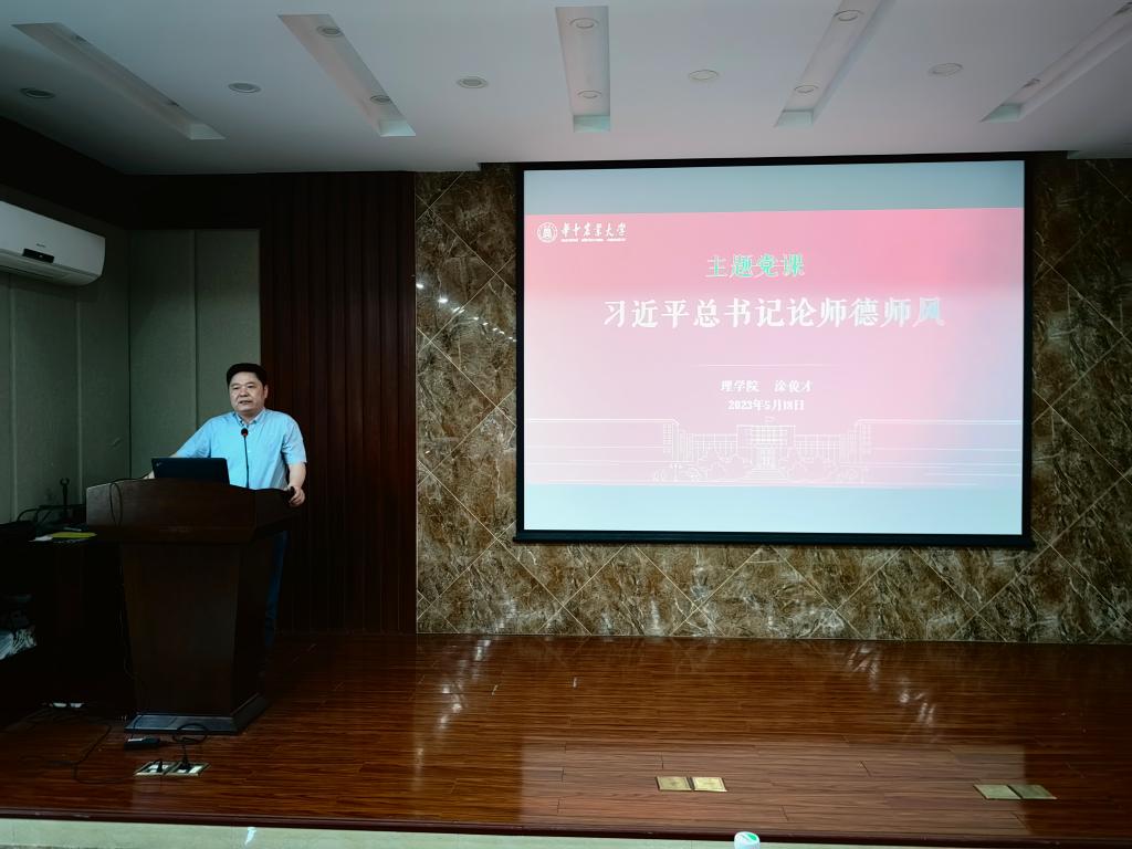 (通讯员:皓月)5月18日下午,理学院师德师风专题学习教育活动在逸夫楼A109报告厅举行,学院全体教职员工参加学习活动,学习活动由学院党委副书记祝鑫主持。