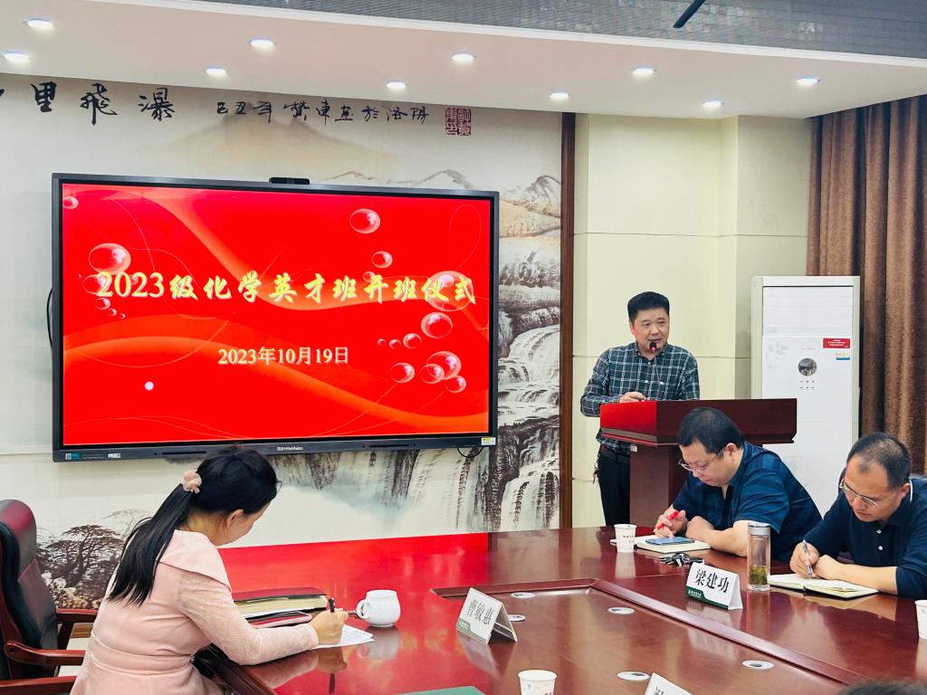 (通讯员 廖英飞)10月19日下午,yl9193永利集团2023级“化学英才班”开班仪式在逸夫楼二楼会议室举行。学院党政班子成员、化学系班子成员、新生班主任及英才班班主任、教务秘书、2023级“化学英才班”全体学生参加仪式并展开交流。开班仪式由副院长曹敏惠主持。