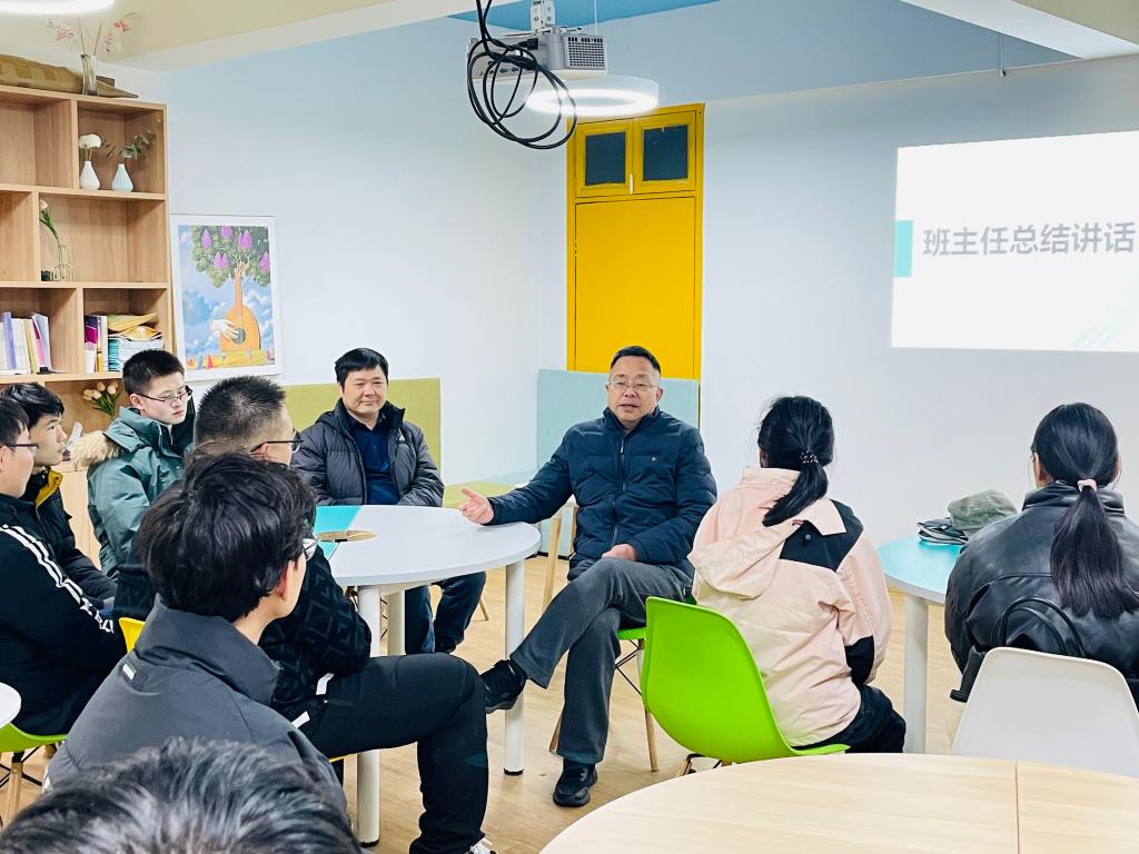 雪后的狮山,寒意未退。同学们踏着风雪返回校园,考虑到天气寒冷,学院组织班主任老师在寝室召开本学期的第一次班会。2月25日晚七点开始,我院在荟十宿舍楼召开收心班会,副校长青平、学院党委书记涂俊才、党委副书记祝鑫、副院长曹菲菲、副院长曹敏惠、副院长周静舫以及各年级辅导员走入班会现场,与同学们亲切交流,迎来新学期的第一课。
