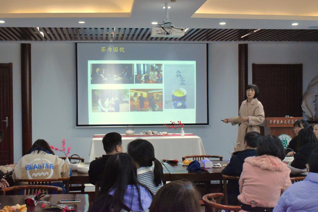 紧接着,张翠娥教授上台,向大家分享了“阅己”的理念。她认为,认识自我,才能成为更好的自己,我们应当在自身的经历中去认清自己,去走自己的道路,过自己的生活。不和他人做比较,应当在和自身的比较中不断的变得更好。品茶如同阅己亦如此,即使是一杯清茶也需要静心品味,才能领悟其中的韵味。同时,她鼓励大家要关爱自己,善待自己,做到真正的“悦己”。
