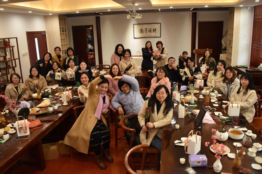 品茶环节中,教师们品尝着自己泡制的茶汤,交流着各自品茶的感受。张翠娥教授则向大家分享了关于“悦己”的重要性,倡导女性关爱自己,去享受生活。最后,教师们每人都得到了一个小茶罐,配有礼品袋、拉菲草、鲜花等用自己的想法进行了茶罐DIY,将自己喜欢的茶叶装入小茶罐中,可以自己留做纪念或赠予他人。