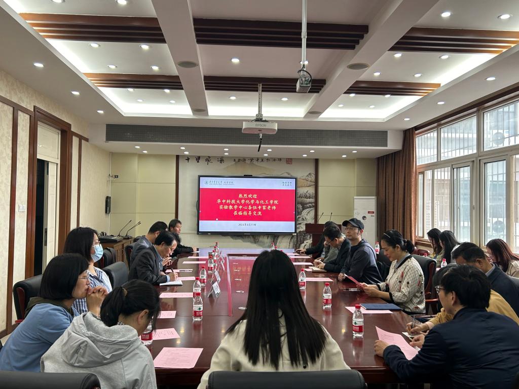 (通讯员 赵蕾)4月11日上午,华中科技大学化学与化工学院实验教学中心主任刘承美、副主任熊辉和实验技术人员等一行18人赴我院化学实验教学中心考察调研。我院化学系主任梁建功、副主任刘永红,实验教学中心副主任石炜、王嘉讯、马忠华老师和实验技术人员共11人参加了实验室工作交流会,会议由系主任梁建功主持。