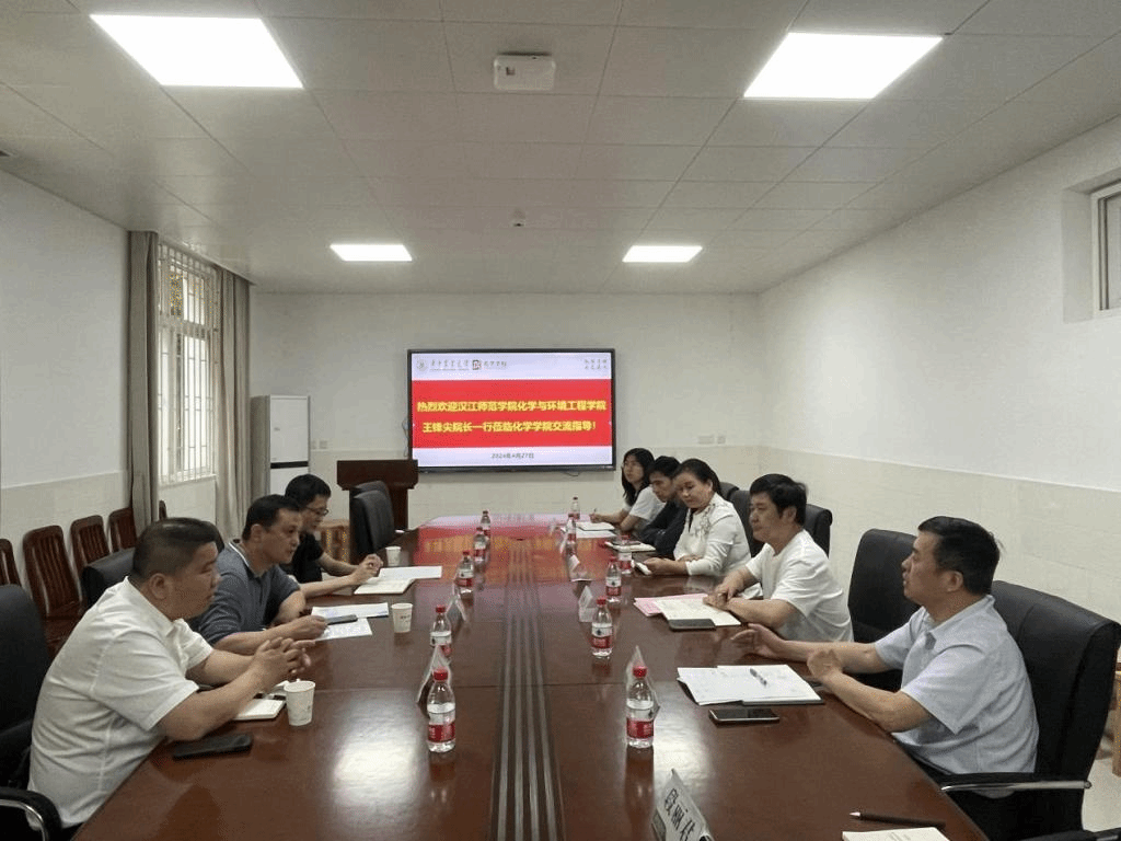 首先,学院党委书记涂俊才对王锋尖院长一行的到来表示欢迎,并整体介绍了学院情况、师资队伍、学科专业、研究方向等方面内容。汉江师范学院化学与环境工程学院院长王锋尖围绕学院沿革、师资力量、专业特色等方面进行介绍,并希望在产学研协同育人新模式,最新科研成果、先进技术和技能经验等方面开展合作。双方还就湖北省大学生化学(化工)学术创新成果报告会的组织流程进行了深入探讨。随后,化学实验教学中心副主任王嘉讯带领来访教师们参观了化学楼科研实验室,重点分享了理化分析平台特色技术、实验室建设和管理等工作经验。