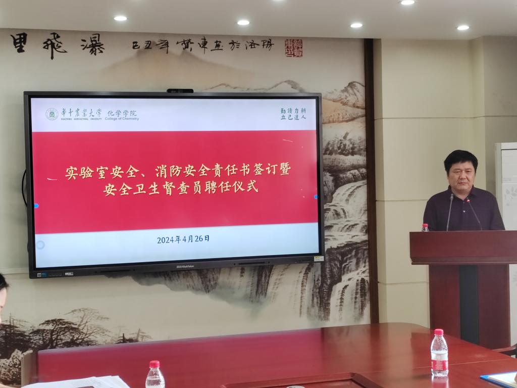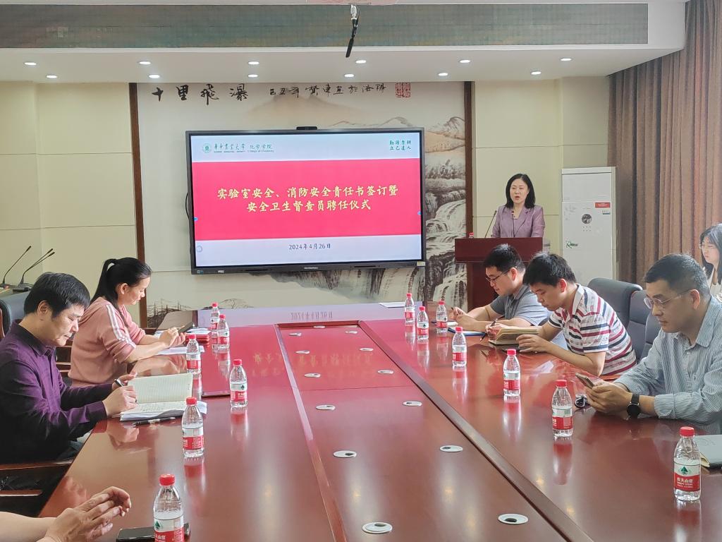 (通讯员:张 涛) 为进一步增强安全责任意识,提升安全防范和应对能力, 4月26日上午,yl9193永利集团在逸夫楼B212举行实验室安全管理和消防安全签订暨首届研究生安全卫生督查员聘任仪式。党委书记涂俊才、副院长曹敏惠、副院长周静舫、化学实验教学中心副主任王嘉讯、石炜以及全体实验技术人员、科研实验室负责人、研究生安全卫生督查员等参加了本次会议,会议由周静舫主持。