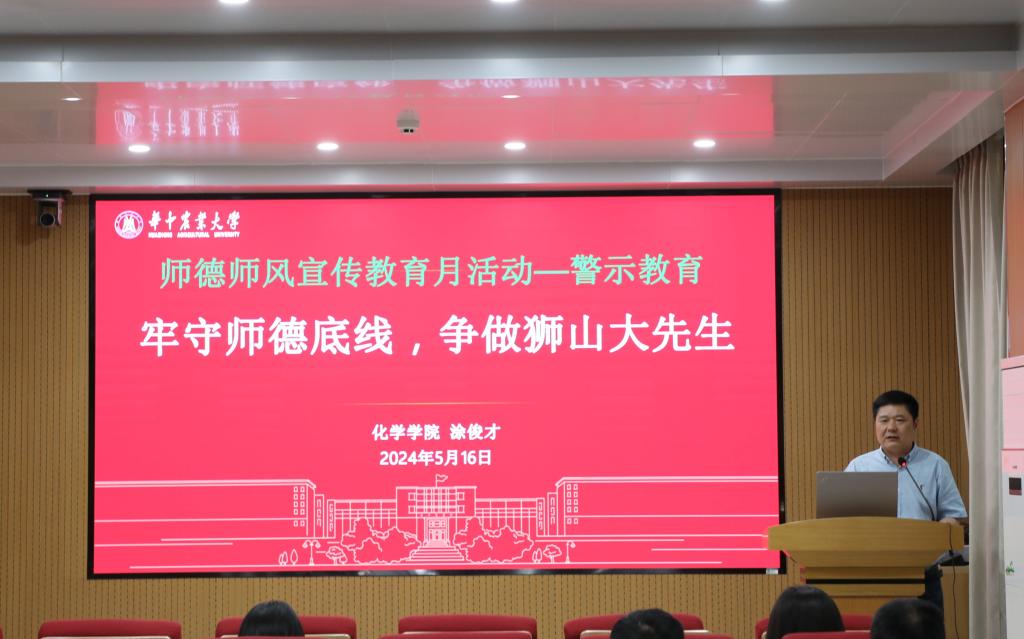 (通讯员:皓月)5月16日下午,学院师德师风警示教育活动在化学楼A102报告厅举行,全体教职员工参加学习活动,活动由学院党委书记涂俊才主持。