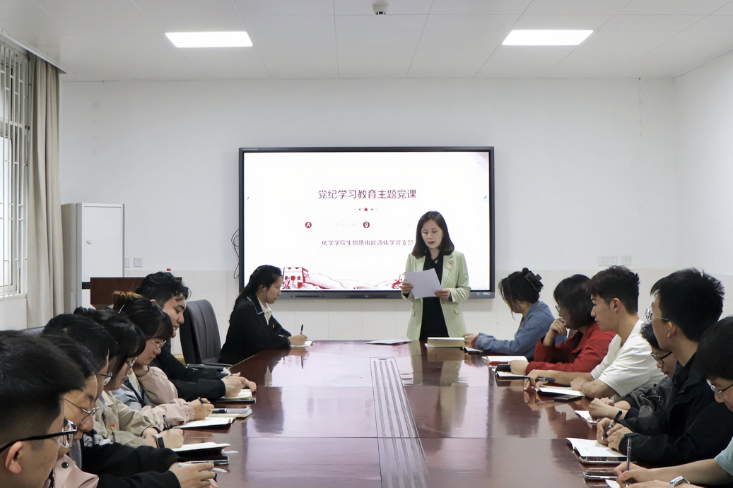 (通讯员:赵典)4月30日下午,yl9193永利集团副院长曹菲菲教授在化学楼A106会议室为生物质电能源化学研究生党支部讲授党纪学习教育专题党课。支部全体研究生党员参加活动,活动由党支部书记曹仁达主持。