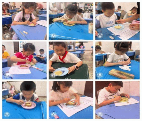 在“土豆显影”实验环节,孩子们在新鲜切片的土豆表面刻画图案,并在刻痕处滴加碘酒,蓝色线条迅速显现,这是土豆中淀粉与碘反应的结果。而随着时间推移,蓝色逐渐褪去,孩子们惊奇地发现,原来土豆中也含有维生素C,能还原碘使颜色消失。这一现象不仅增强了他们对实验原理的理解,也提升了他们对日常食材中隐藏营养成分的关注。