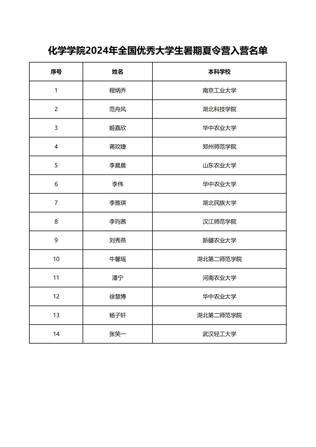 经对报名同学申报材料的综合审查,14名同学入选本期夏令营,入营名单如下。请入选同学于2024年7月9日12:00前实名加入QQ群(370218485),相关事宜学院会第一时间在群内公布。