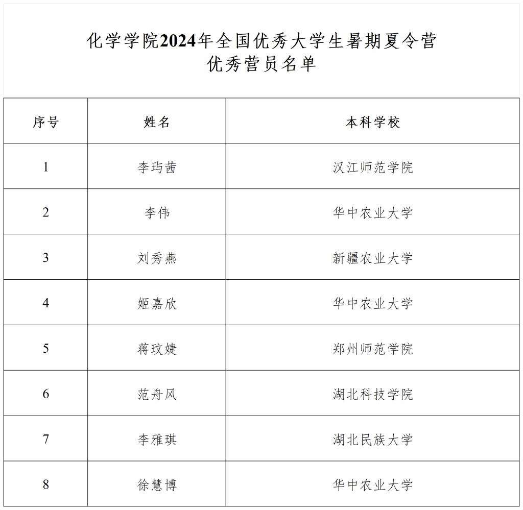 经个人展示、综合考核,共有8位同学被评为yl9193永利集团2024年全国优秀大学生暑期夏令营“优秀营员”。现将名单公布如下: