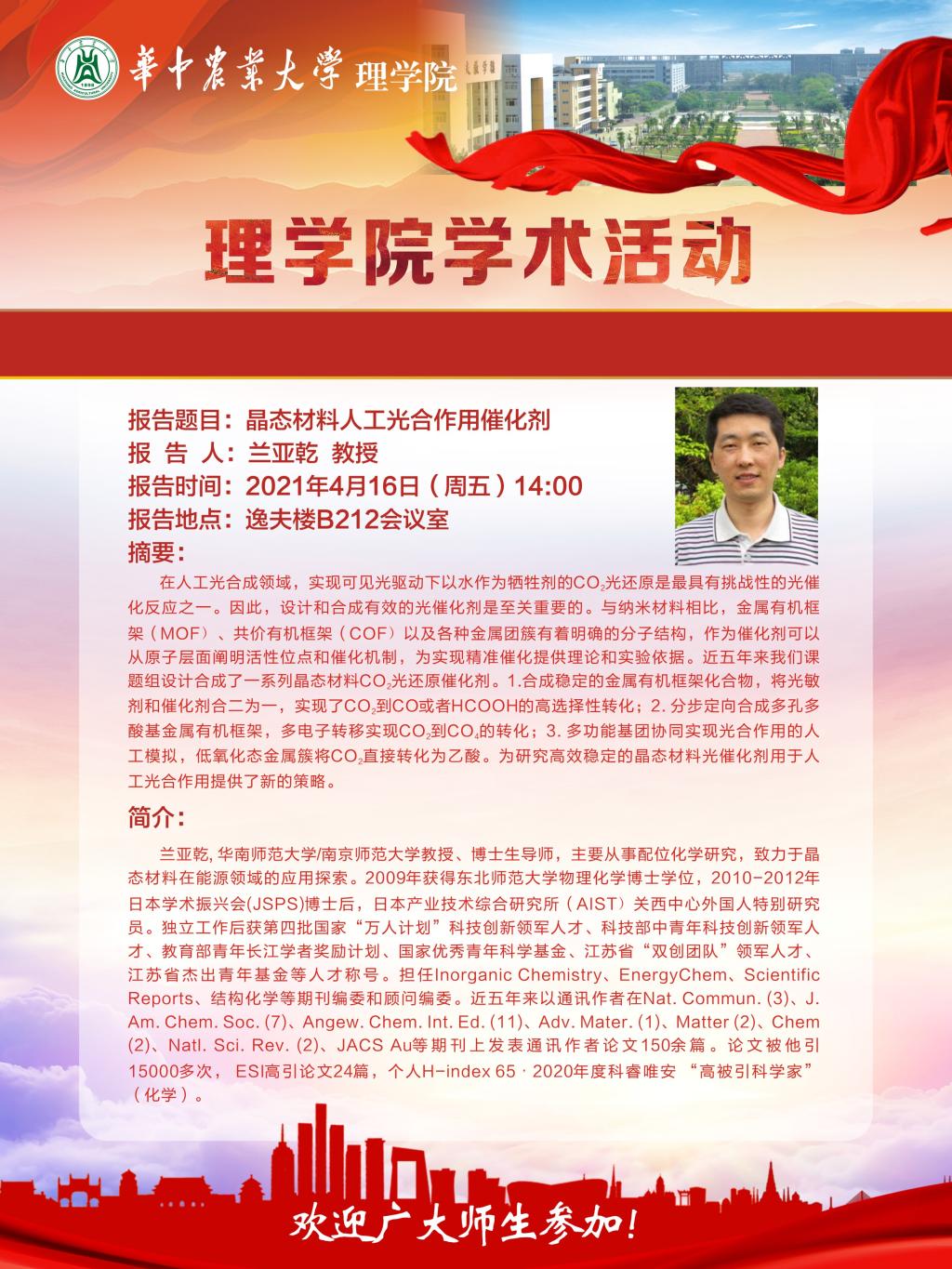 地址:湖北省武汉市洪山区狮子山1号永利集团化学楼