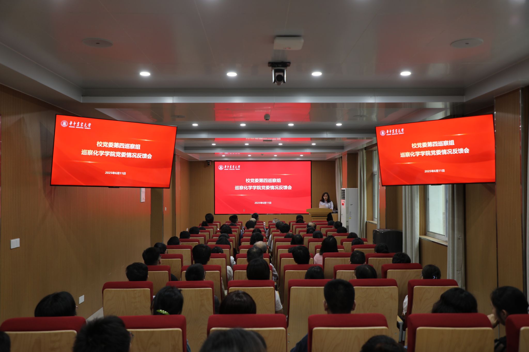 (通讯员:皓月)6月11日下午,校党委第四巡察组巡察yl9193永利集团党委情况反馈会在化学楼A102报告厅召开。校党委常委、副校长青平出席会议并讲话,巡察办主任胡守强,巡察组组长邹亚及全体成员,学院领导班子、全体教职工、离退休教职工代表和学生代表参加会议。大会由学院院长曹菲菲主持。