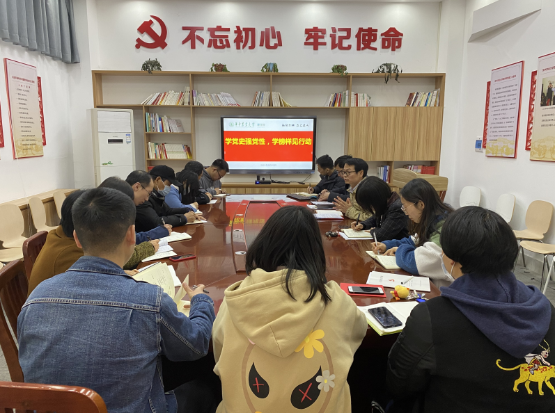 最后参会党员交流自己的学习体会。刘熹微谈到,通过党史的学习,深入了解中国共产党建党100周年的发展历史,我们党总能在危难时刻把准方向、稳住大局,带领中国人民取得一个又一个胜利,我们要善于从历史中汲取智慧和力量,坚定“没有共产党,就没有新中国”,“只有共产党,才能建设新中国”的政治自信。刘宁亮谈到,通过党史的学习,了解我们党的奋斗历程和伟大成就,感到振奋和鼓舞,我们要坚持和发扬党的光荣传统和优良作风,坚定信念,凝聚力量,在学习教育中启迪智慧、砥砺品格。熊娟谈到,不仅要把党史学习教育作为坚守革命初心、传承红色基因的精神洗礼,更要将学习教育精神贯彻到实际工作中去,以党史学习为契机,上好每一堂课,写好每一篇论文,做好每一项科研。