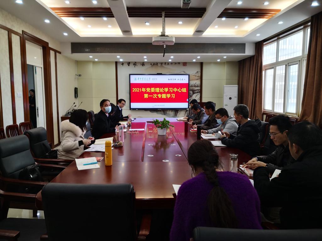 3月25日下午2:00,学院党委理论学习中心组在逸夫楼B212会议室集中学习习近平总书记在党史学习教育动员大会上的讲话精神、在中央党校中青年干部培训班开班式上的讲话精神和在全国脱贫攻坚总结表彰大会上的讲话精神,学院领导班子成员、教工党支部书记及支委参加了学习活动,学习活动由学院院长陈浩主持。