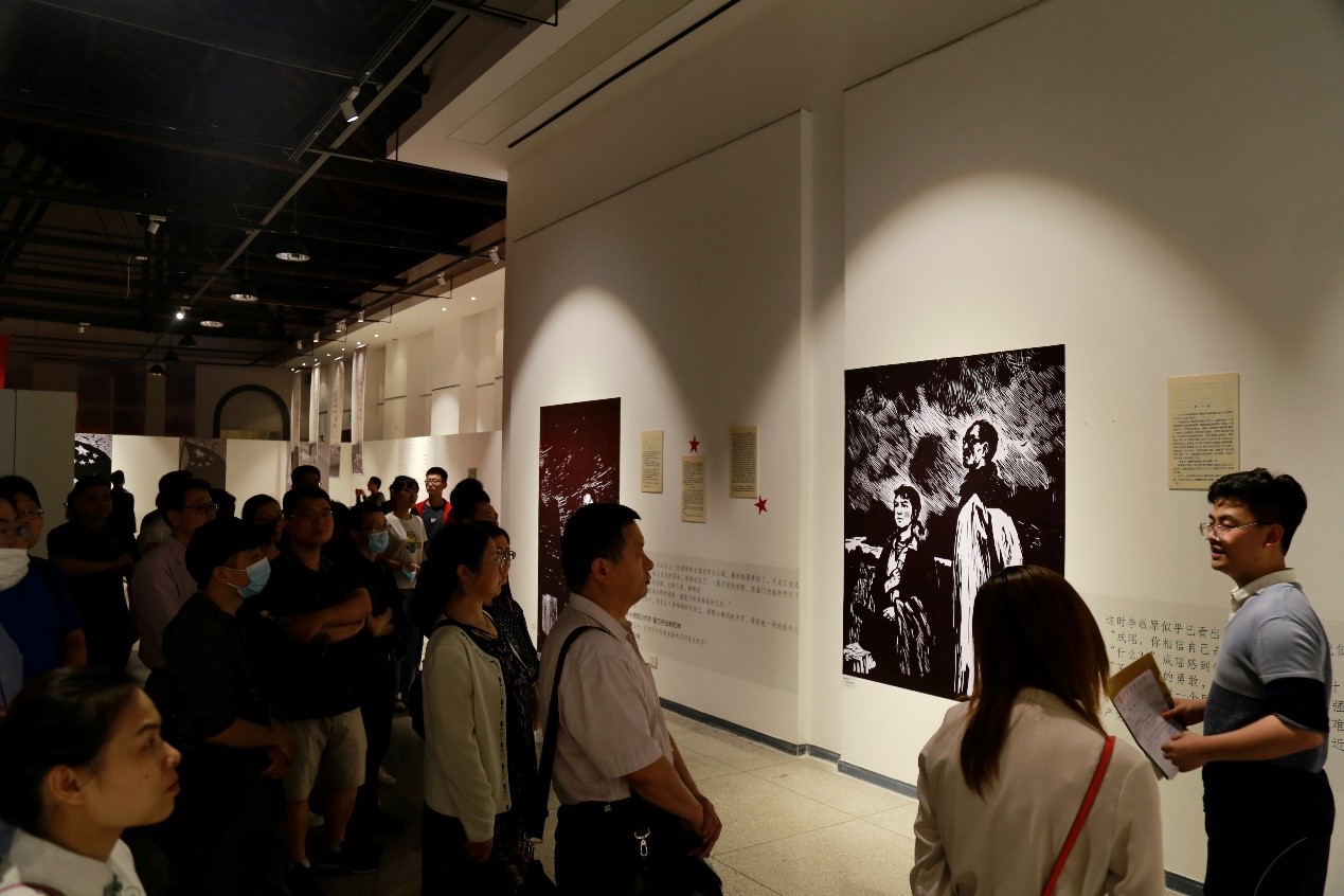 在展览的前言部分,教职员工在讲解员的引导下,思绪重回那段峥嵘岁月