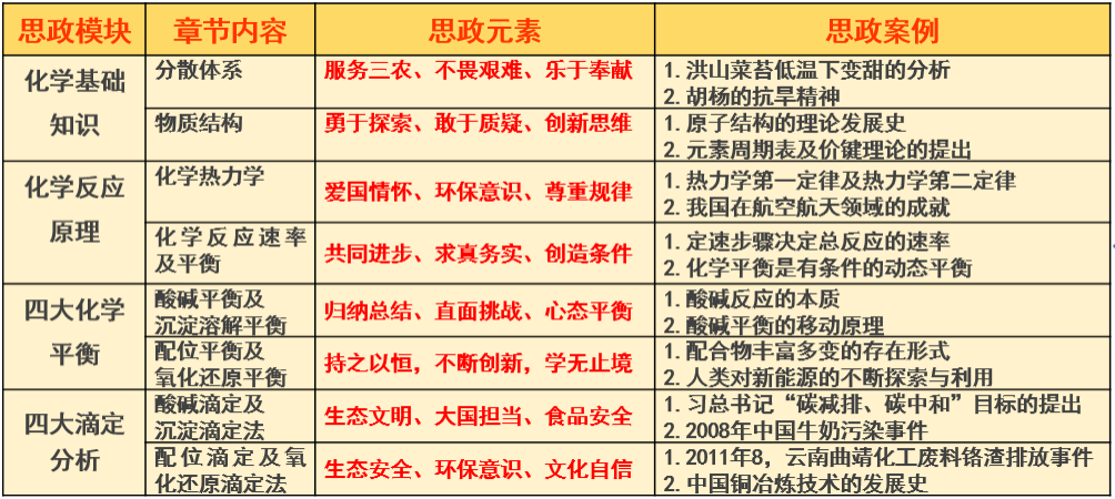 针对学生实际情况,团队本着以学生发展为中心的理念,遵照“新农科、新工科”对现代环境工程类人才培养的新要求,以“夯实基础,提升能力,联系专业”为教学举措,进行了一系列的课程教学改革与探索,提出了创建“四化同步”为特色的无机及分析化学教学模式。具体而言,四化即通过课程思政精准化、教学内容前沿化、教学方式信息化及课程考核多元化等多重手段的运用,实现补齐短板,夯实学生的理论知识,密切联系专业实际,激发学生自主学习的兴趣,通过启迪学生的科学思维,促进学生高阶思维形成的育人目标。