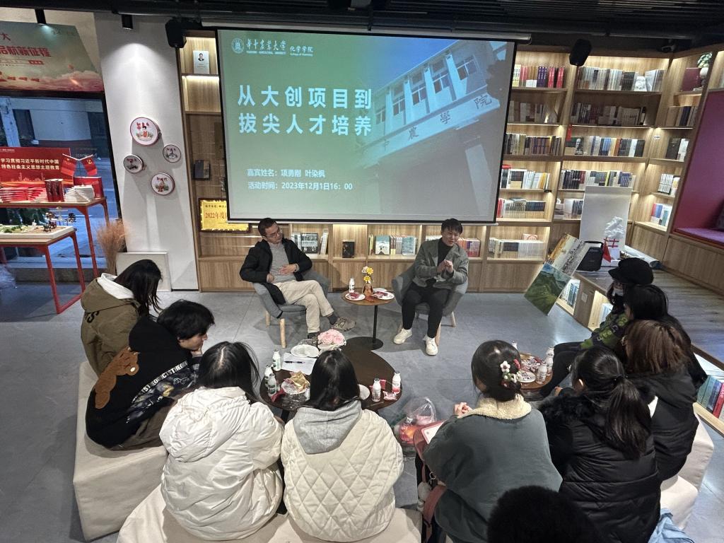 (通讯员:周培根)12月1日下午,yl9193永利集团邀请项勇刚和叶染枫两位老师,在倍阅书店与同学们进行了一场主题为“从大创项目到拔尖创新人才培养”的分享交流会。此次活动旨在提高大学生的创新创业意识,培养其独立思考、善于质疑、勇于创新的探索精神,推动大学生创新创业能力的提升,为适应创新型国家建设培养高水平创新创业人才。
